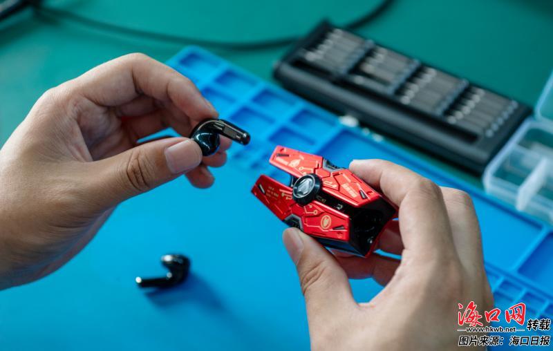4月7日,在海口綜合保稅區司龍氏(海南)科技有限公司維修車間內,工程師雷波戴著防靜電手環,仔細拆解一副來自境外的無線藍牙耳機。這副耳機看起來很新,但右耳無法充電,在海口綜保區進行“手術”后將復運出境。