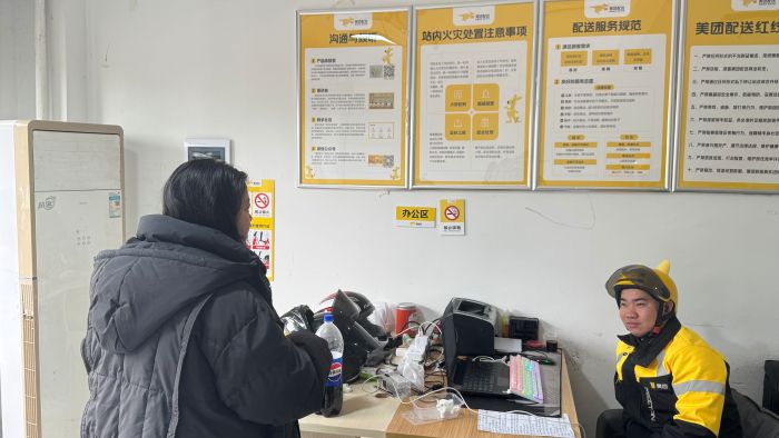 街道工作人員走進(jìn)轄區(qū)外賣站點(diǎn),鼓勵(lì)外賣騎手通過“隨手拍”參與食品安全監(jiān)管