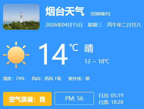 東部海域(開發區至牟平區)將有0.4米的小浪,風浪向東;平均水溫:10.3-11.5℃;