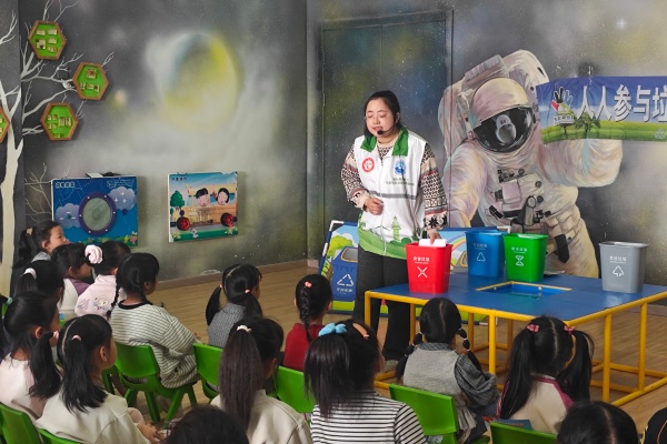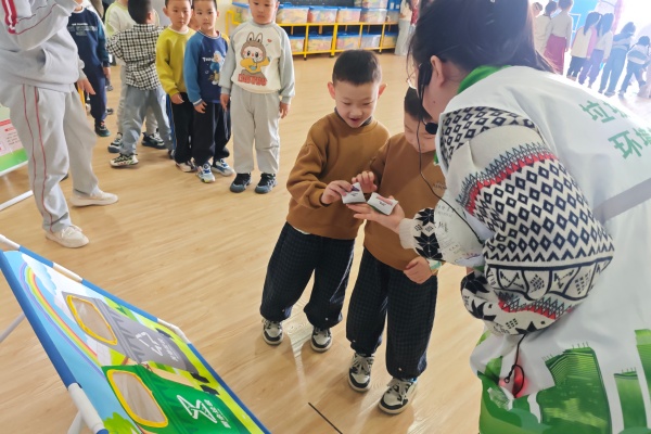 活動伊始,工作人員化身“環保老師”,用生動形象、通俗易懂的語言,結合幼兒的認知特點,開啟了垃圾分類小課堂。工作人員借助色彩鮮明的分類垃圾桶模型、常見垃圾實物卡片,向孩子們詳細講解了垃圾分類的重要意義——減少環境污染、節約寶貴資源,讓我們的家園更潔凈美麗,營造健康安全的生活環境。