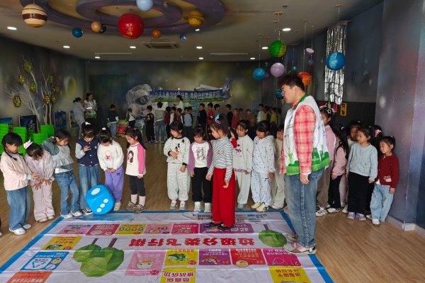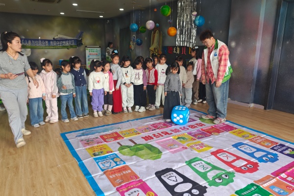 另一邊的垃圾分類大富翁游戲區同樣熱鬧非凡。工作人員精心布置了大富翁游戲棋盤,棋盤格子上分別標注著不同的垃圾名稱和分類小問題,孩子們兩人一組,輪流擲骰子前進,走到對應格子后,需準確說出格子上垃圾的分類類別,或回答相關分類小問題,回答正確即可獲得前進獎勵,回答錯誤則停留一輪,工作人員會耐心講解知識點、給予提示。孩子們圍在棋盤旁,認真思考、積極應答,在趣味博弈中鞏固了所學知識,真正實現了“玩中學、學中悟”,現場歡呼聲、掌聲不斷。