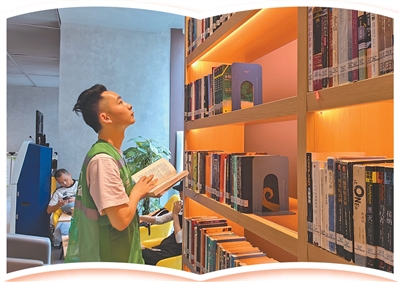 福田街道文化站工作人員陳文城介紹,該館藏書2萬余冊,月均客流量過萬人次。去年,福田街道聯動深圳書城文化集團,在15個暖蜂驛站設閱讀區,投放數千冊實用書籍,還開啟線上聽書、圖書漂流、閱讀積分等服務,把小哥們的碎片化時間變成成長“播種期”。