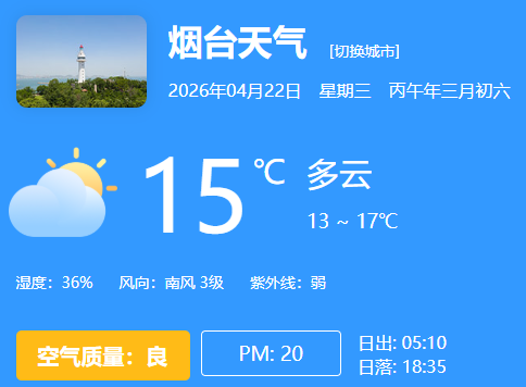 東部海域(開發區至牟平區)將有0.5米的輕浪,風浪向西南轉東北;平均水溫:10.3-11.5℃;