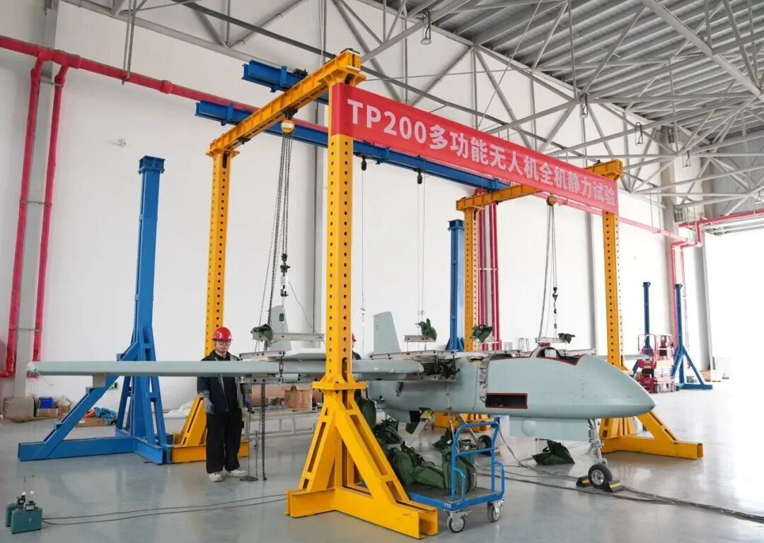 時隔不久,壹通無人機自主研制的TP200多功能固定翼無人機也順利完成首飛全機靜力試驗。